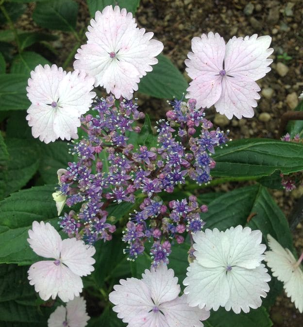 Origine Angleterre dans fin des années 40 Taille moyenne à inflorescences plates. Bien florifère, fleurs fertiles bleues au centre et stériles blanches immaculées à la périphérie.Très bonne rusticité, mais comme pour tous les hortensias à fleurs blanches, il est préférable de les mettre à mi-ombre.