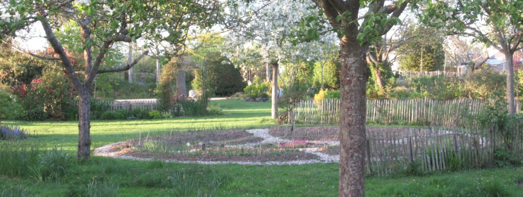 Sa forme ronde pour séduire et adoucir. Le mandala-jardin pour mettre un terme à la linéarité des rangs d’oignons, de carottes… Dans le mandala on tourne en rond et ça fait du bien.