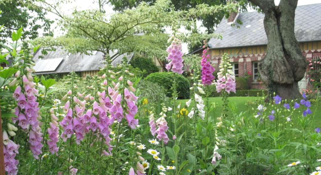 Ce serait un peu long d’expliquer pourquoi le massif porte ce nom… Ici la couleur dominante est le blanc. Le massif est au centre du jardin face à la maison. Un cornus controversa variegata en est la vedette.